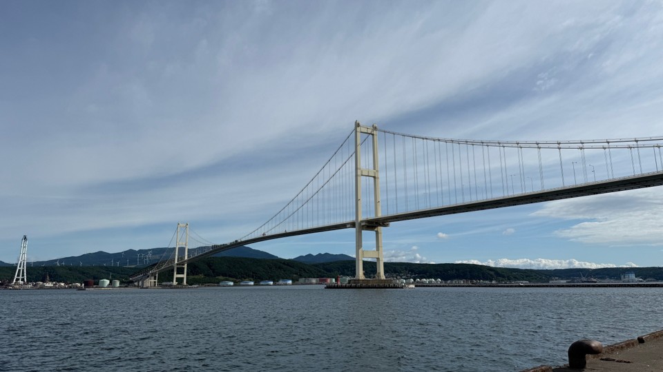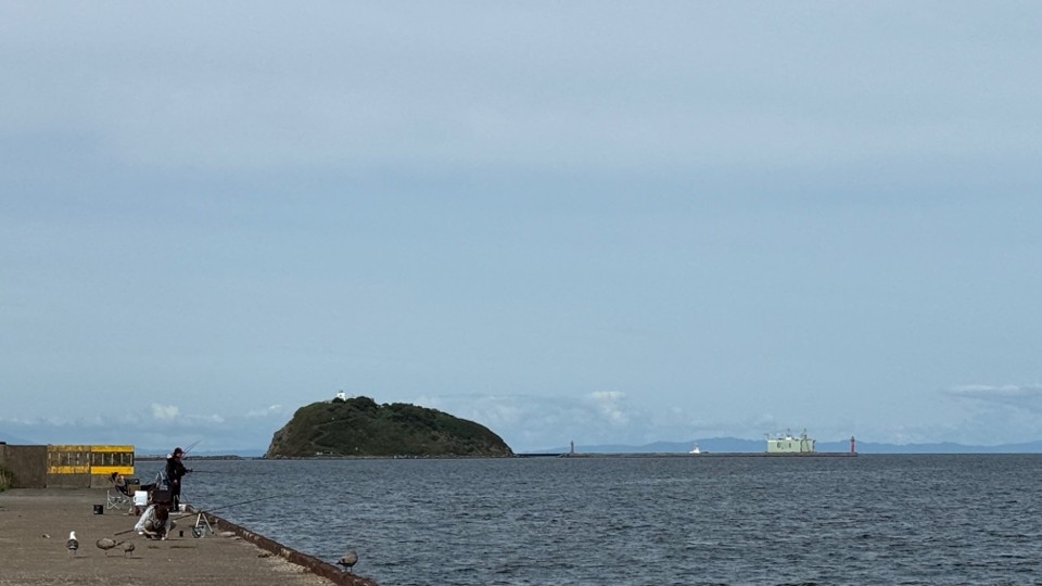 室蘭市内での研修開始前の朝、祝津埠頭に立ち寄ってみると、釣り糸を垂れている人が何人もいました。